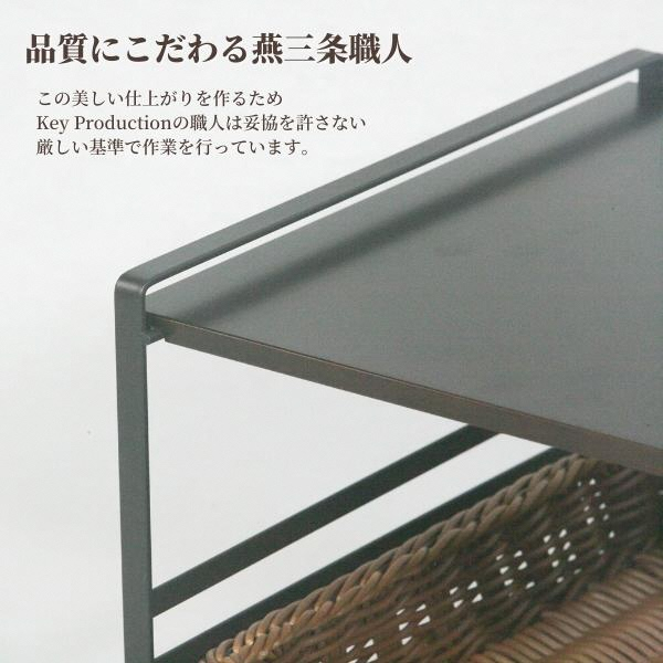 | 容量 | 材質 フレーム:スチール、メラミン焼付塗装 天板 :MDF、ウレタン樹脂塗装 バスケット:ポリプロピレン サイズ:幅:約43.5奥行:約30.5高さ:約21cm 重量:約2.3kg |