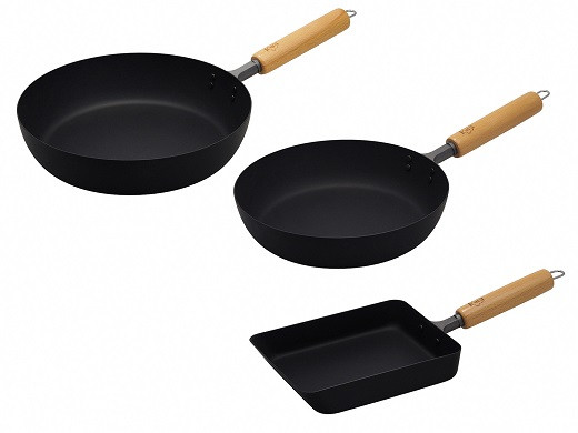 強火でおいしく調理できる鉄製フライパンと玉子焼きのセットです。凹凸加工により油馴染み、焦げ付きにくさを改善しました。油を馴染ませるお手入れをすることで、フッ素加工製品のような塗膜加工の劣化による性能低下を心配せず永くお使いいただけます。