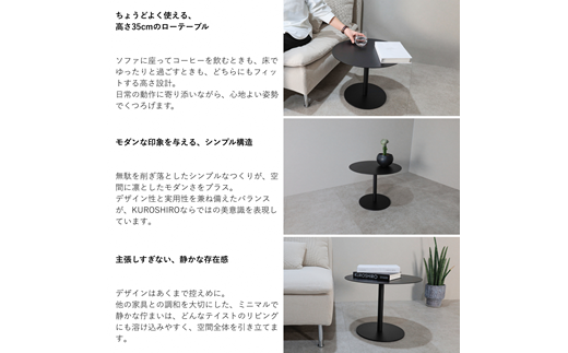 KUROSHIROのコーヒーテーブルは、リビングでのくつろぎ時間を上質に演出するローテーブル。