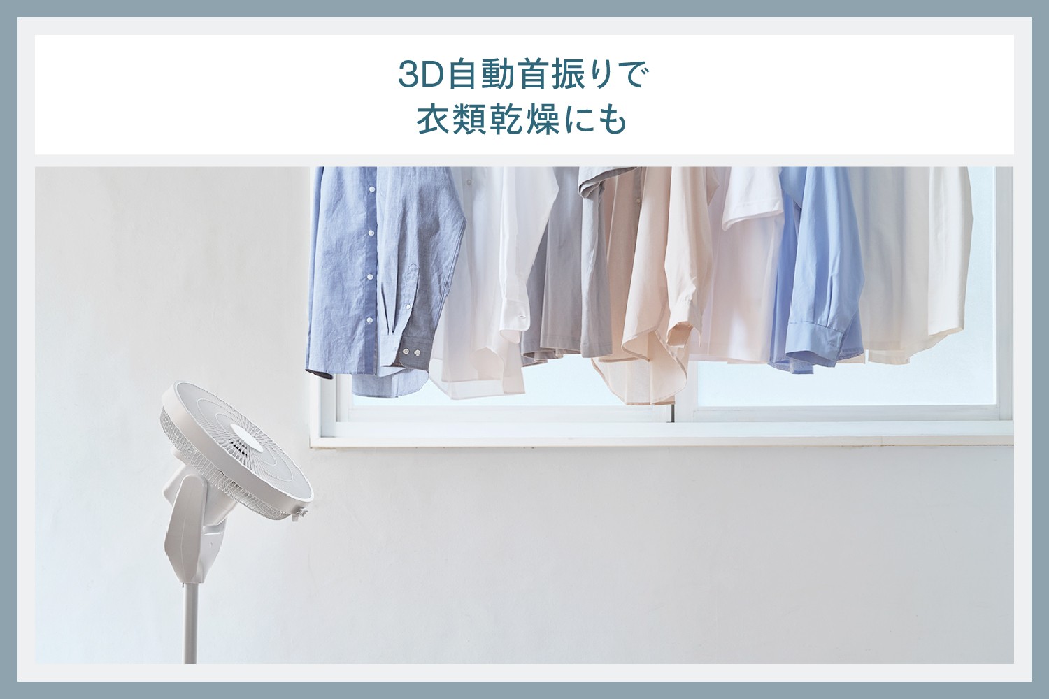 10段階の風量調節で、微風から強風までお好みの風量に調整できる扇風機としての機能だけでなく、空気循環や衣類乾燥にも、年間を通して活躍する一台です。