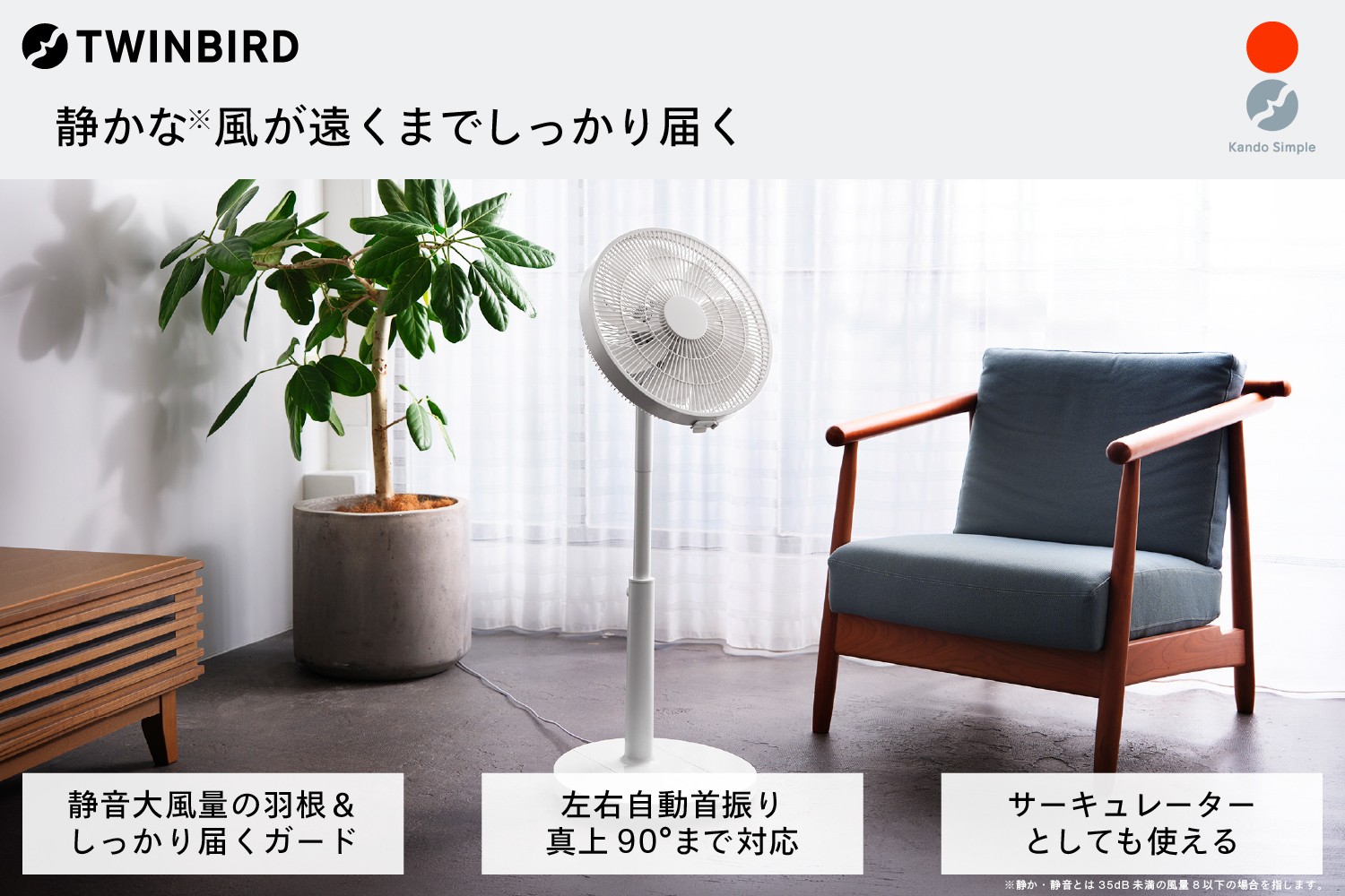 ツインバードのサーキュレーション扇風機(EF-J952W) は、静音かつ大風量の羽根“エクセルブレード”と、