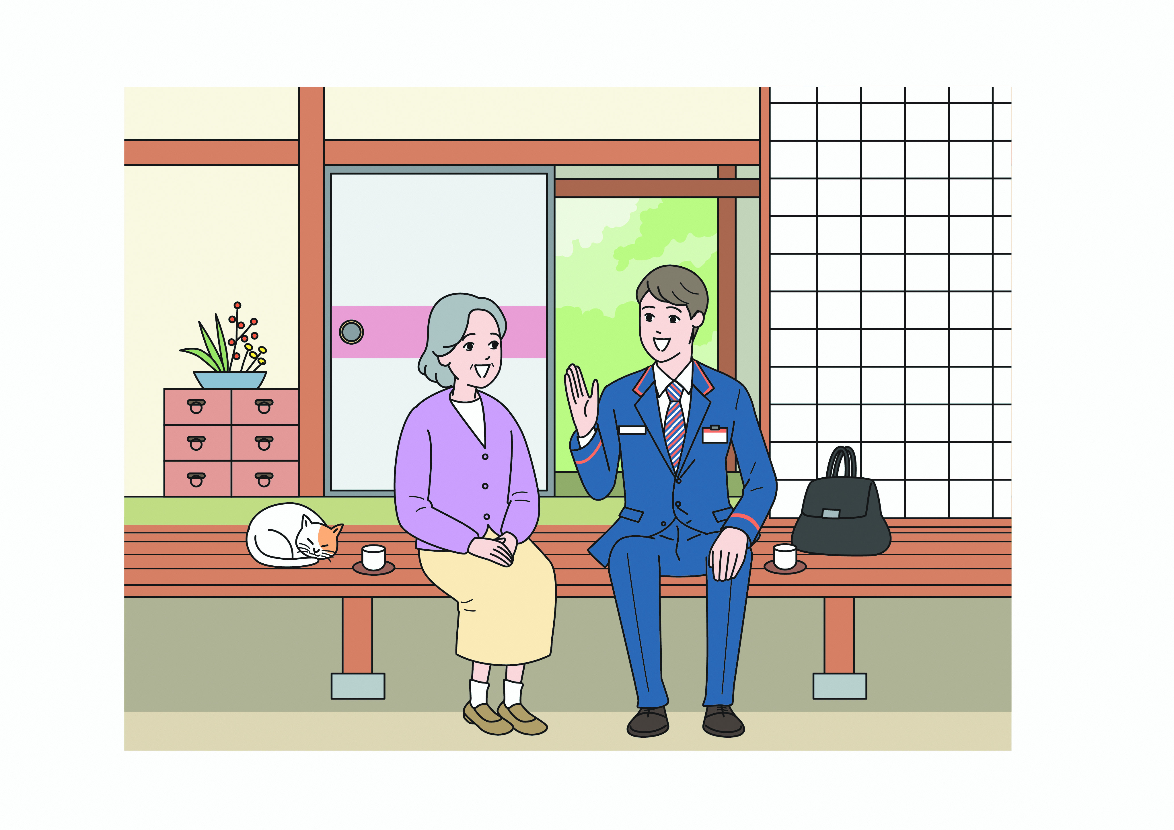 ふるさと燕市で暮らすご家族のご自宅等に、郵便局社員等が毎月1回訪問し、生活状況を確認して、その結果をご家族様へお知らせするサービスです。