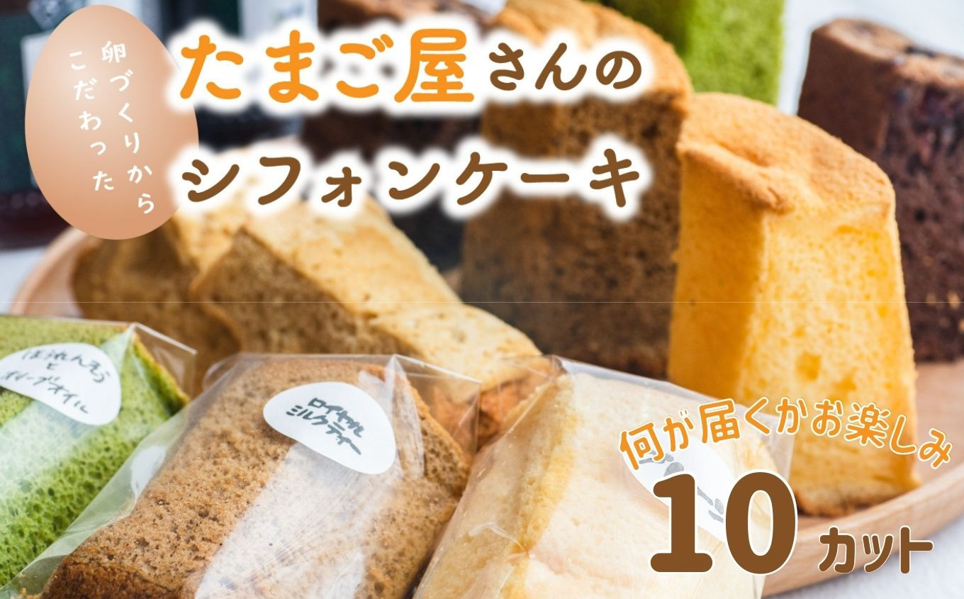 新鮮なたまごと素材の味をいかした優しいお菓子 たまご屋さんのこだわりシフォンケーキ ふわふわなカット10個入り 際立つ卵の美味しさ!(カットシフォンアソート10個セット)味はおまかせ