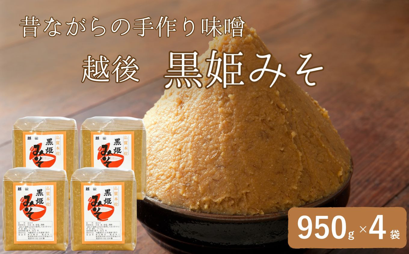 昔ながらの手作り味噌「越後 黒姫みそ」950g×4袋(合計3.8kg)…