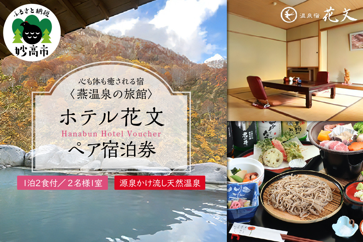 下界を見下ろす燕温泉。乳白色の源泉かけ流しと妙高の美味しさに 癒される旅 ホテル花文 一泊二食付きペア宿泊券チケット