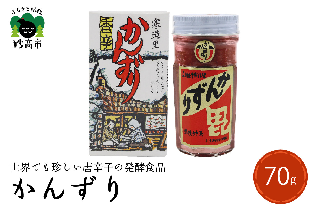 マイルドな辛さと風味豊かな柚子の香りが食欲をそそる! 珍味かんずり化粧箱入70g新潟県妙高市