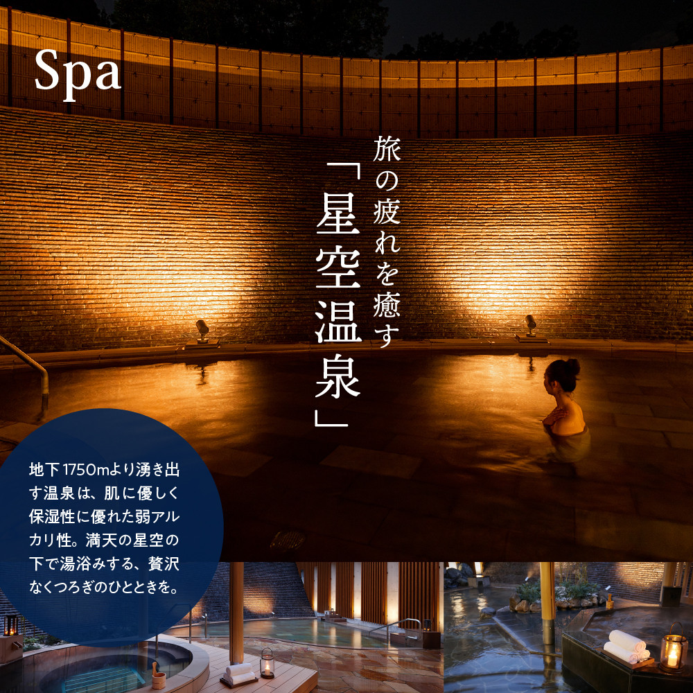 また、温浴施設は新たに掘削した温泉(1,750m掘削、弱アルカリ性)を引き、更に施設の拡充を図っております。「星空温泉」、「屋内温水プールは通年営業」、また夏季季節限定営業の屋外プールもご利用ください。