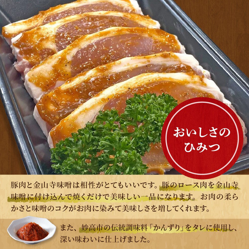原料に厳選した新潟県産の豚肉のロースを使用し、もろみと信州産味噌をベースにしたお肉と相性の良い金山寺味噌に漬け込みました。