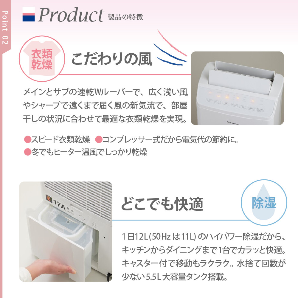 ・水捨て回数が少ない5.5L大容量タンク搭載