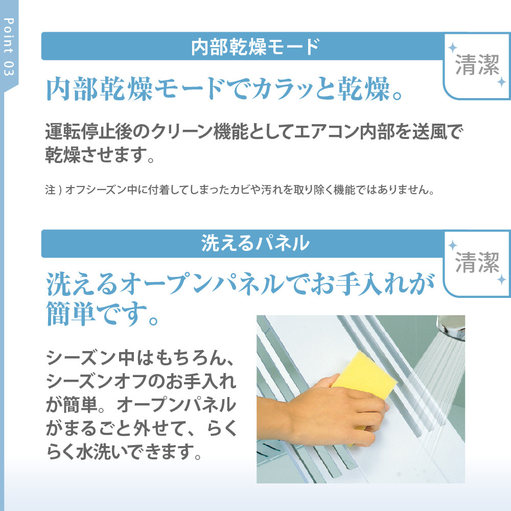 ・内部乾燥モードでエアコン内部をカラッと乾燥。