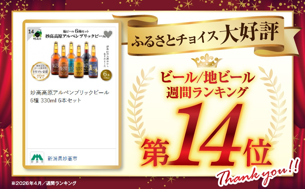 妙高高原の天然水で丁寧に仕込んだクラフトビール 妙高高原アルペンブリックビール 6種 330ml 6本セット