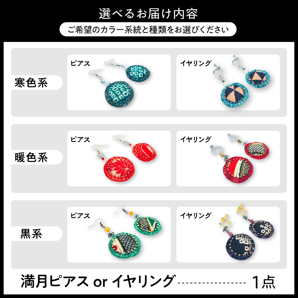 鏡に映るたび、揺れる鮮やかなピアス・イヤリング 満月ピアスorイヤリング(寒色系・暖色系・黒系)