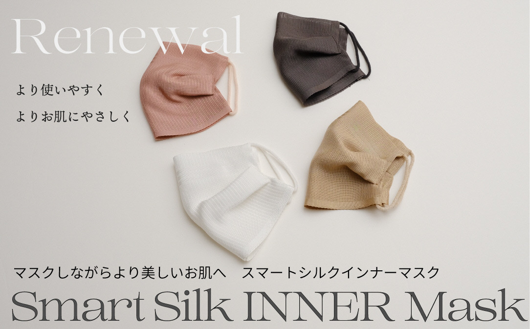 マスクをつけることが当たり前の新しい生活スタイルになり様々なマスクを見かけるようになりました。ただ、お仕事によっては、布マスクではなく会社から不織布マスクが支給されたり、医療関係者のようにサージカルマスクしかつけられない人もいます。そこで私たちは、上質な五泉シルクの心地よさを感じて肌荒れの悩みを解消したい!と不織布マスクの内側につけて使うシルクのインナーマスクを開発しました。
