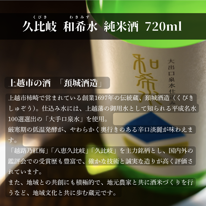 | 容量 | 日本酒 【久比岐 和希水(くびき わきみず)純米酒 720ml】 製造:頚城酒造株式会社 度数:15度 産地:新潟県上越市 原料米:越淡麗 精米歩合:60% 日本酒度:+3.0 酸度:1.6 ※20歳未満の飲酒は法律で禁止されています つまみ 【姫の恵】 製造者:株式会社傳平 容量:南蛮エビ15g/ホタルイカ7匹/メギス9匹 産地:新潟県糸魚川市 原材料:南蛮エビ(ホッコクアカエビ)/ホタルイカ/メギス アレルギー:エビ 賞味期限:90日 保存方法:直射日光を避け、常温にて保存してください。 ※ 季節によって素干しの種類が変更される場合があります。 締めの食材 【半生そば つゆ付き】 製造者:有限会社イチムラ 容量:120g×3/つゆ70ml×2 産地:新潟県妙高市 原材料:国産そば粉/小麦粉/バイタルグルテン/食塩/食酢 つゆ/しょうゆ(小麦・大豆を含む)(国内製造)、砂糖、米発酵調味料、混合削りぶし(そうだかつおぶしかつおぶし、さばぶし)(さばを含む)、かつおぶしエキス、こんぶエキス(小麦・大豆を含む)、食塩/調味料(アミノ酸等) アレルギー:そば粉、小麦、大豆、さば 賞味期限:90日 保存方法:直射日光を避け、常温にて保存してください。 |