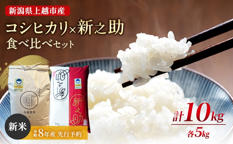 先行予約 令和8年産 新潟県上越市産 特別栽培米 コシヒカリ×新之助 各5kg(計10kg)食べ比べセット ご飯 おにぎり