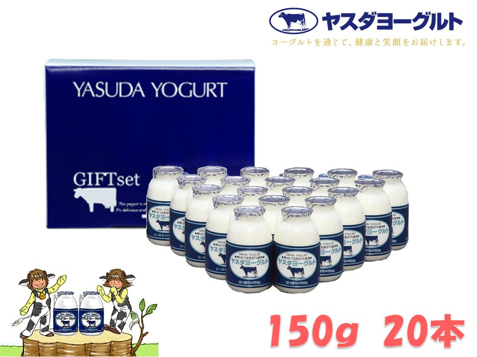 阿賀野市返礼品ナンバーワン!ご贈答用に大変喜ばれています。ぜひご利用ください。 【お歳暮対象】 ヤスダヨーグルト 150g×20本 小ボトル ヨーグルト まるでスイーツ 化粧箱 無添加 搾りたて こだわり生乳 濃厚 飲むヨーグルト のむよーぐると 1B06010