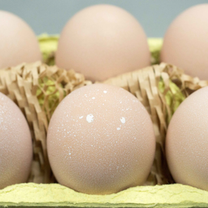 たまごの品種が分かるようにそれぞれ鶏のイラストシールが貼付されております。