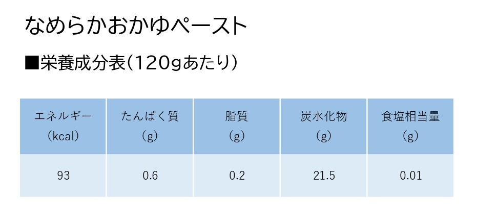 | 容量 | ・食が細くなってたくさん食べられない方向けのおかゆ なめらかおかゆペースト 120g×30個×12回 |