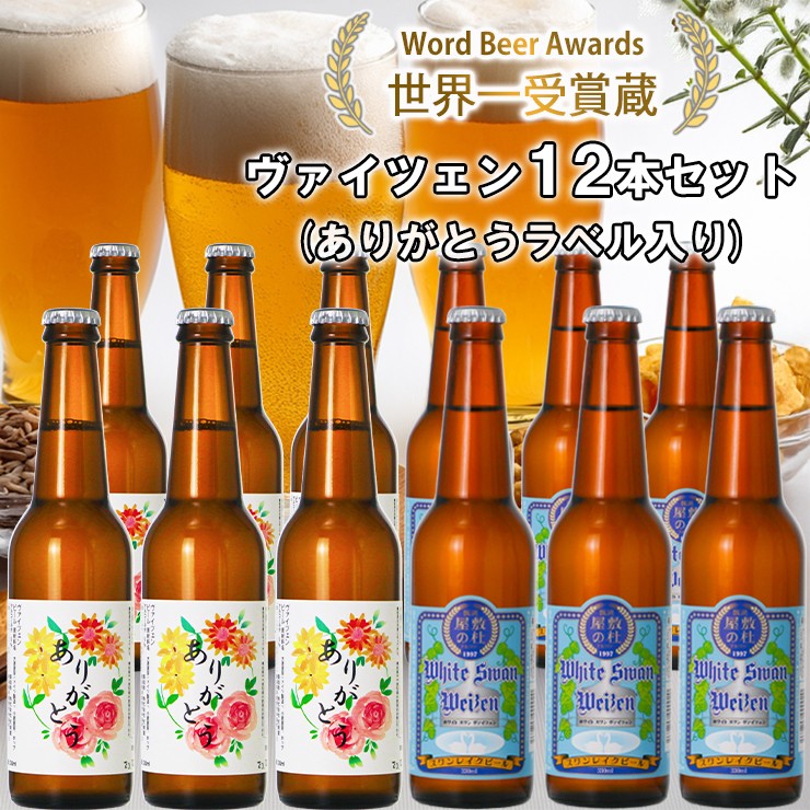ありがとうラベルでギフトにもおすすめ! ビール スワンレイクビール ホワイトスワンヴァイツェン ありがとうラベル 12本セット 阿賀野市 新潟県 阿賀野 クラフト クラフトビール 地ビール ビール お酒 酒 ギフト プレゼント 贈答 贈り物 お中元 お歳暮 のし対応 熨斗 1S42024