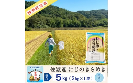 NEW 【新米予約 3か月定期便】佐渡島産にじのきらめき 無洗米5Kg 令…