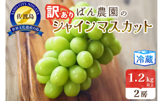 【訳あり】シャインマスカット2kg 3~4房 佐渡島産