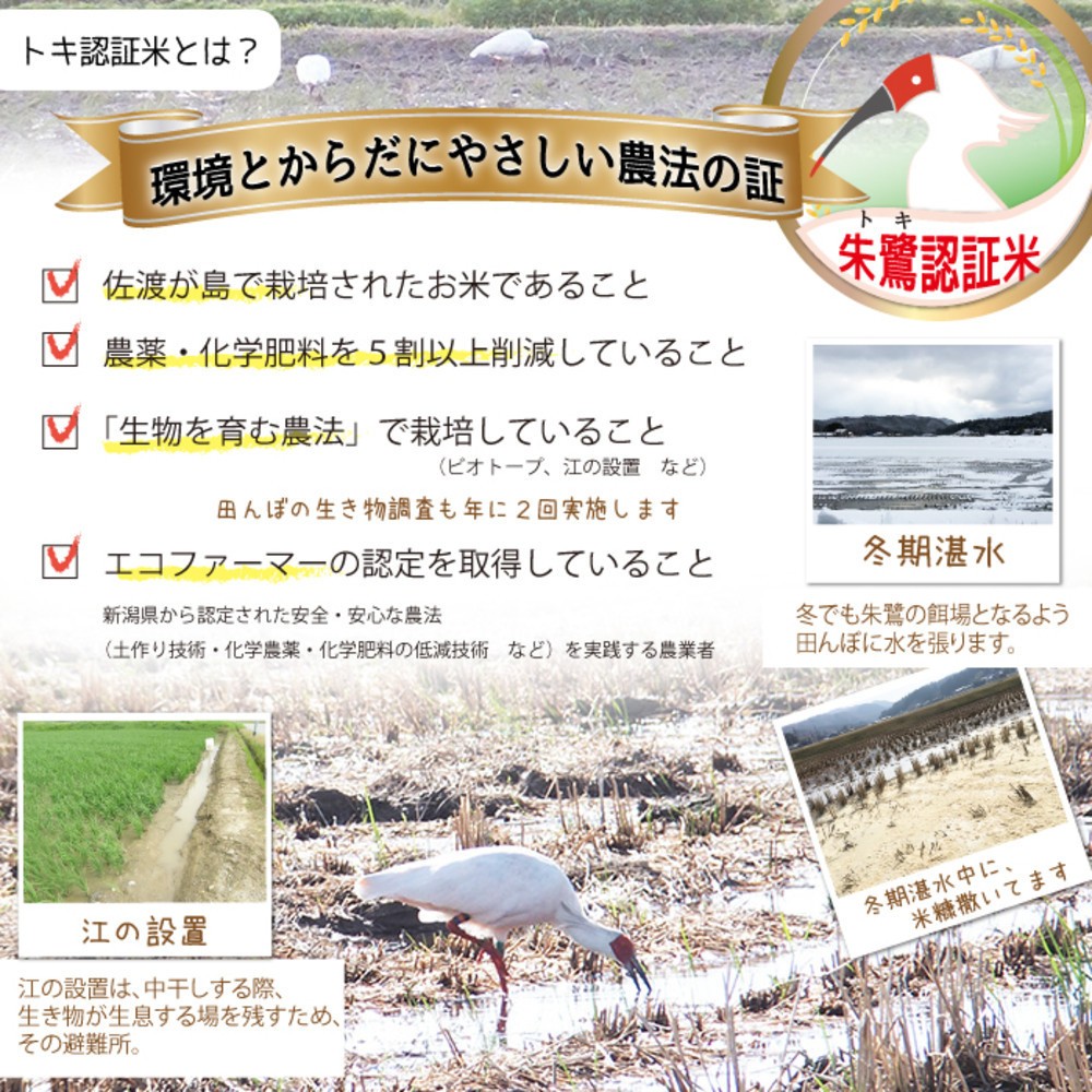 ※お米の売上の一部は「佐渡市トキ環境整備基金」に寄付されています。