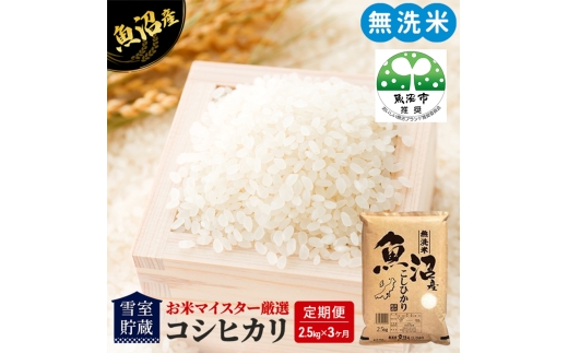 お米マイスター推奨の【雪室貯蔵】魚沼産コシヒカリを精米したて、手間いらずの無洗米にしてお届けします。 ・日本有数の豪雪地帯である魚沼市の雪を利用した雪室で貯蔵した1等米の魚沼産コシヒカリ100%を使用しています。お米マイスターと農産物検査員の資格を持つ店主おすすめの商品です。 ・当店の【無洗米】は新しい無洗米機で糠層をきれいに取り除いているので、臭いや色が気にならず時間が経っても美味しく召し上がっていただけます。 ・「1996年第8回優良米穀小売店全国コンクール」において模範的な小売店として認められ『全農会長賞』を受賞しました。 ・日本米穀商連合会よりHACCP適合事業者に認定されております。昭和32年創業以来、魚沼より全国の皆様に安心安全を心掛けた美味しいお米をお届けするよう努めてまいりました。 是非一度当店自慢の【無洗米】魚沼産コシヒカリ100%をご賞味ください。 ※画像はイメージです。 ※直射日光を避け、冷暗所で保管ください。精米日より1か月以内にお召し上がりいただくことをお勧めします。 ※寄附金のご入金確認の翌月から、毎月中旬頃に計3回のお届けとなります。 ※万一、生育状況などの影響で収獲量が不足しお届けができない場合は、事前に連絡させていただきます。