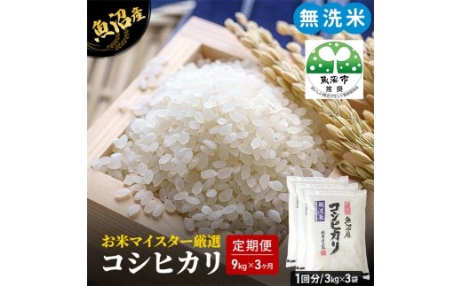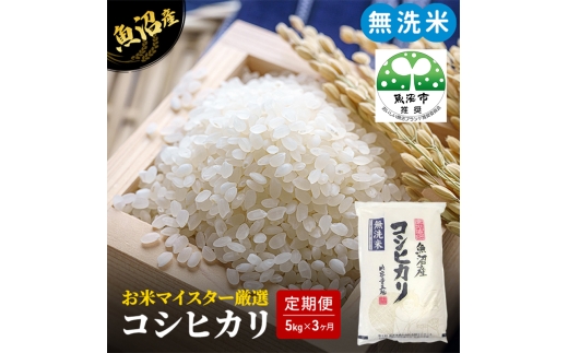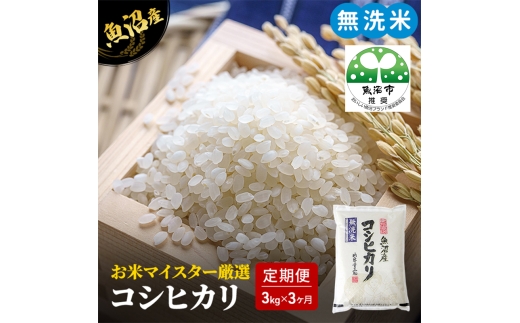 【無洗米】にして新鮮な状態でお届けします。 ・お米マイスターと農産物検査員の資格を持つ店主が、その年の天候や作柄を加味して、魚沼市の中でも出来の良い地域を厳選した魚沼産コシヒカリ100%を使用しています。 ・当店の【無洗米】は最新の無洗米機で糠層をきれいに取り除いているので、臭いや色が気にならず時間が経っても美味しく召し上がっていただけます。 ・当店は「優良米穀小売店全国コンクール」において模範的な小売店として認められ『全農会長賞』を受賞しました。日本米穀商連合会よりHACCP適合事業者に認定されております。 当店では昭和32年創業以来魚沼より全国の皆様に安心安全な美味しいお米をお届けするよう努めてまいりました。是非一度当店自慢の【無洗米】魚沼産コシヒカリ100%をご賞味ください。 ※画像はイメージです。 ※直射日光、高温多湿を避け保存してください。 ※精米日より1か月以内にお召し上がりいただくことをお勧めします。 ※寄附金のご入金確認の翌月から、毎月中旬頃に計3回のお届けとなります。 ※万一、生育状況などの影響で収獲量が不足しお届けができない場合は、事前に連絡させていただきます。
