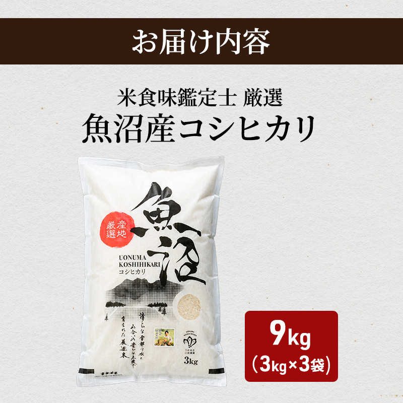 [№5762-0754]令和7年産【無洗米】「米食味鑑定士 厳選」魚沼産コシヒカリ 9kg(3kg×3袋) お米