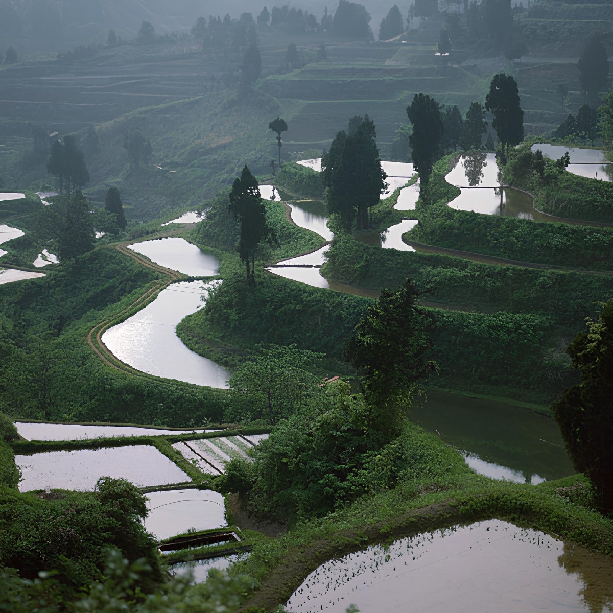 コシヒカリ産地としては名実ともに日本一といわれる新潟県魚沼は全国に名だたる豪雪地帯であり、その栄養豊富な雪解け水は肥沃な土壌をつくり出します。 更にこの土地の標高と昼夜間の寒暖の温度差は激しく、コシヒカリの稲作環境において、水、土壌、気温、風いずれもこれ以上無いと言われるほどの奇跡的な自然条件の調和があると云われています。