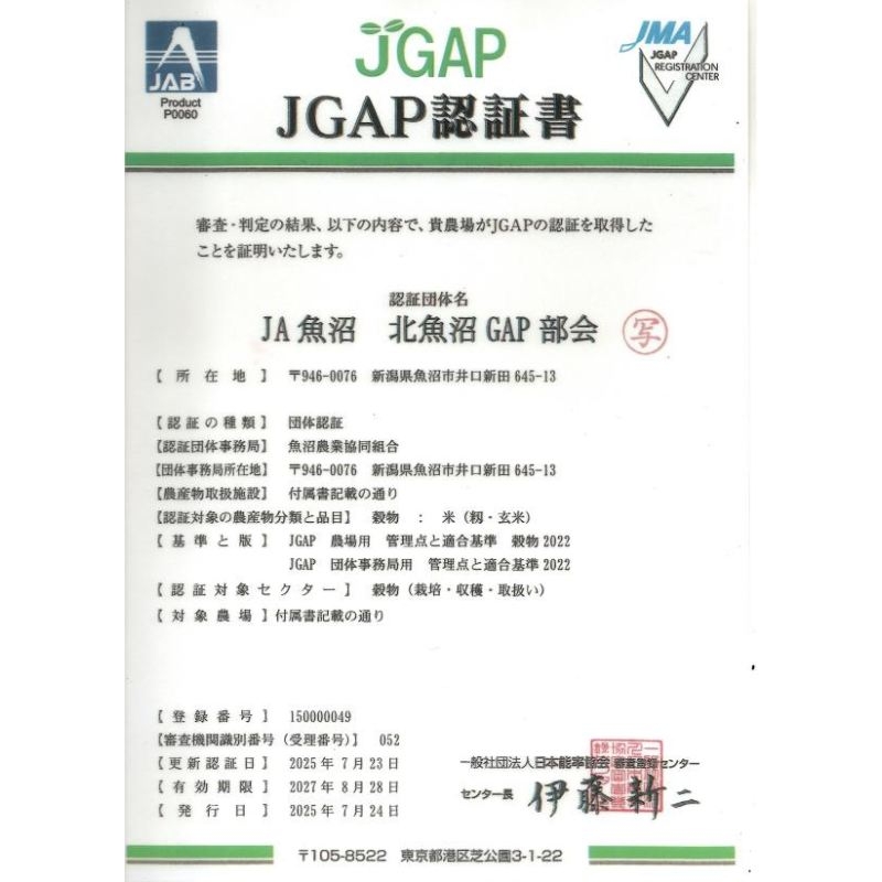 魚沼市「魚沼ブランド」推奨品 ・農薬、化学肥料、栽培期間中不使用 ・生物に配慮した水管理、栽培方法 ・豪雪地帯である魚沼ならではの再生可能エネルギー「雪」利用した雪室貯蔵庫で保存(12月下旬~翌年9月上旬) ・食味を保つよう籾の乾燥を3段階で実施 ・エコファーマー認定者 ・生産工程管理を行っておりJ-GAP認証を取得済 ■標準的な栽培方法ではヤゴ、オタマジャクシがトンボやカエルになる前に田んぼの水を抜いてしまいますが、私の田んぼでは水を貯めておくなど、生態系の保全に配慮した栽培方法をとっています。石などの異物除去を優先しつつお米を傷めないよう選別を行っているため、青未熟米、白未熟米、籾などが若干混ざることがありますが、見た目が悪いだけで有害性は報告されておりません。ご賞味の際は、田んぼにたくさんの生物たちが元気にしている姿をイメージしてみてください。