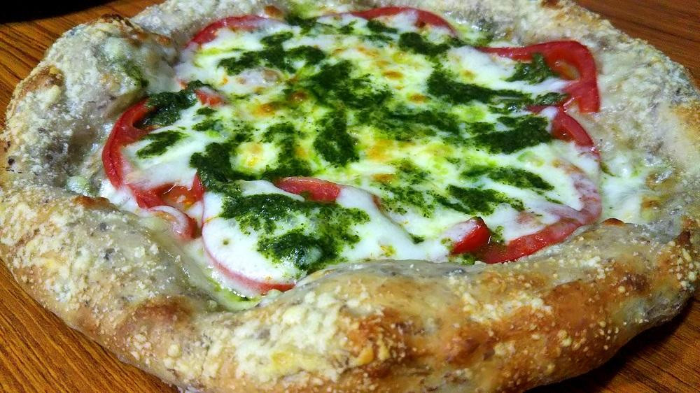 厳選北海道産小麦を使用した生地に黒毛和牛を贅沢にブレンドし独自製法の生地ピザ。トッピングも生地の旨さが伝わるようシンプルにトマト、バジル、チーズのみ。