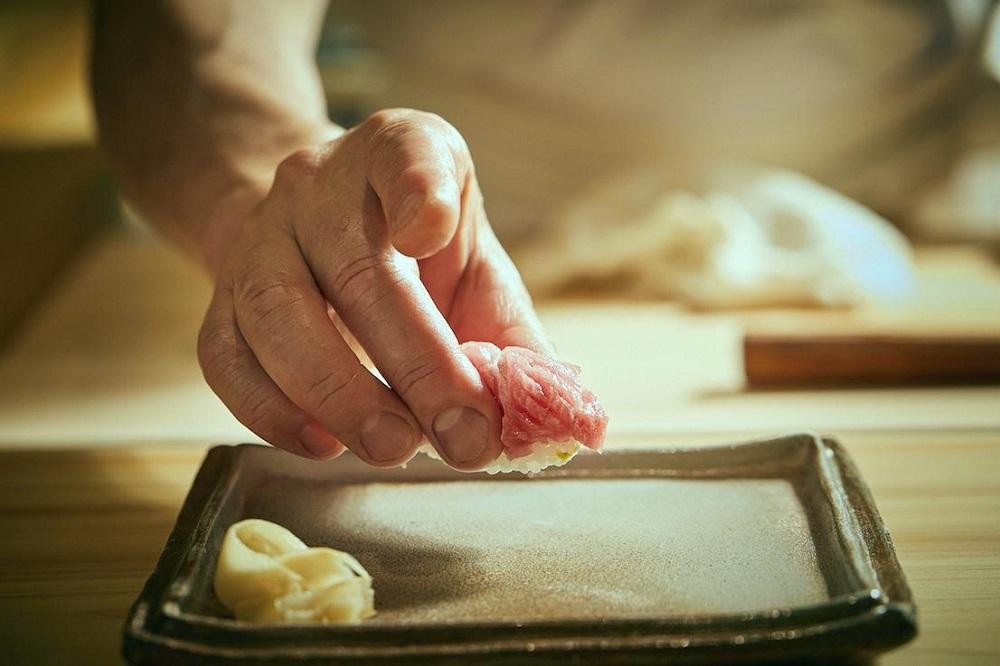 低温調理や真空調理などの新しい調理技術で仕込んだ、こはだ 、煮ハマグリ、穴子などの伝統的な握り。新潟県の極上素材であるノドグロ、甘エビ、ニシバイ貝、アワビ…。さらに閖上の赤貝、明石のタイ、淡路島由良の赤ウニなどのネタに、山の中でしかできないひと仕事を加える。春は山菜を薬味に使い、夏はナスをはじめとした伝統野菜、秋から冬は当地名産の椎茸を握る。