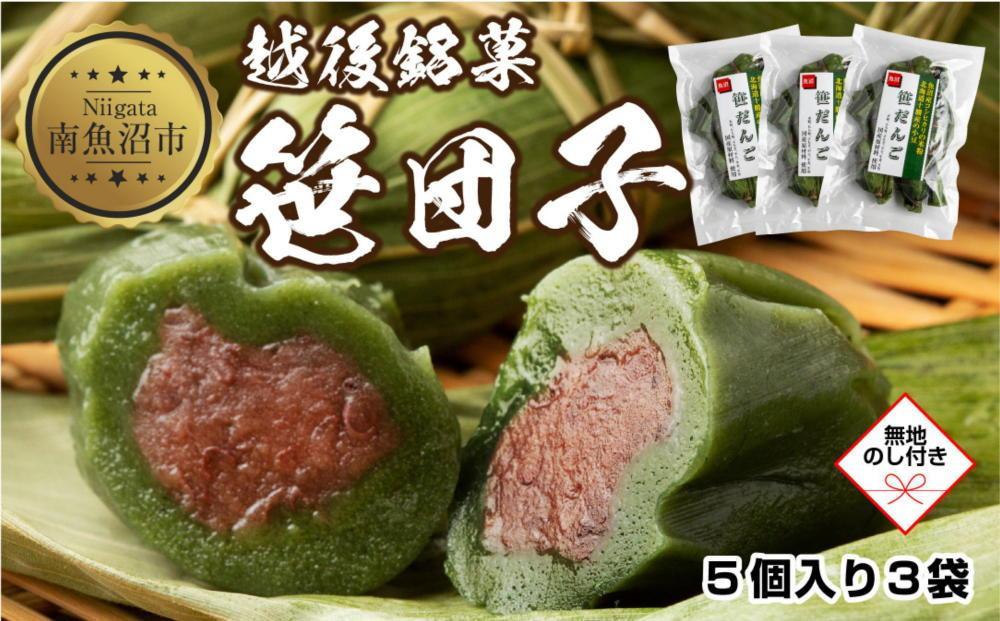 無地熨斗 笹団子 つぶあん 5個入り 3パック 計15個 越後銘菓 笹だんご 団子 だんご ダンゴ 粒あん つぶ 餡 餅 冷凍 コシヒカリ 米粉 手作り 和菓子 お菓子 越季 新潟県 南魚沼市