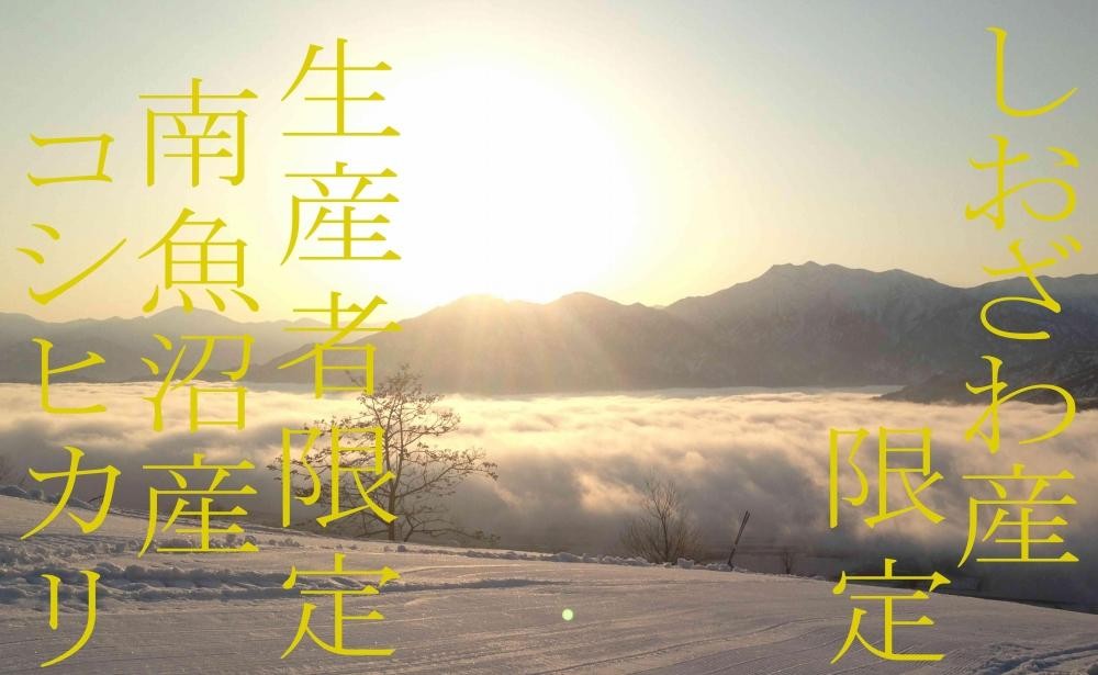 国内屈指の豪雪地域である南魚沼しおざわ地域、その豪雪を源とした豊富で清涼な水とコシヒカリ栽培に好適な盆地特有の昼夜の寒暖差のある気候と土壌との三条件が相まって生育された【南魚沼しおざわ産コシヒカリ】