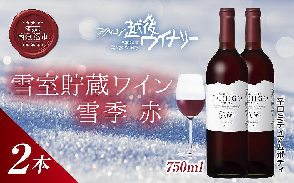 雪室貯蔵ワイン 雪季 せっき 赤 750ml 2本セット アグリコア 越後ワイナリー 南魚沼産メルロー 辛口 ミディアムボディ アルコール12% 国産ワイン 魚沼ワイン 送料無料 新潟県 南魚沼市