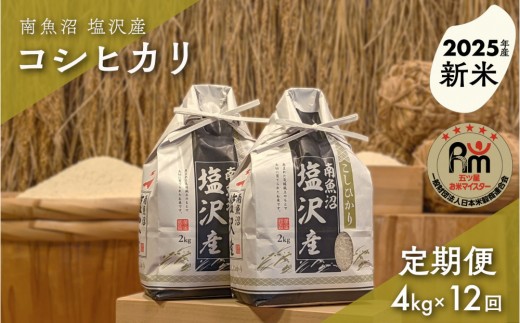 【新米】令和7年産「五つ星お米マイスター」の南魚沼塩沢産コシヒカリ 精米4kg(2kg×2個)×12回(毎月定期便)