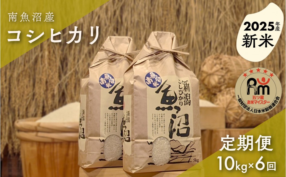 【新米】令和7年産「五つ星お米マイスター」の南魚沼産コシヒカリ 精米10kg(5kg×2個)×6回(毎月定期便)