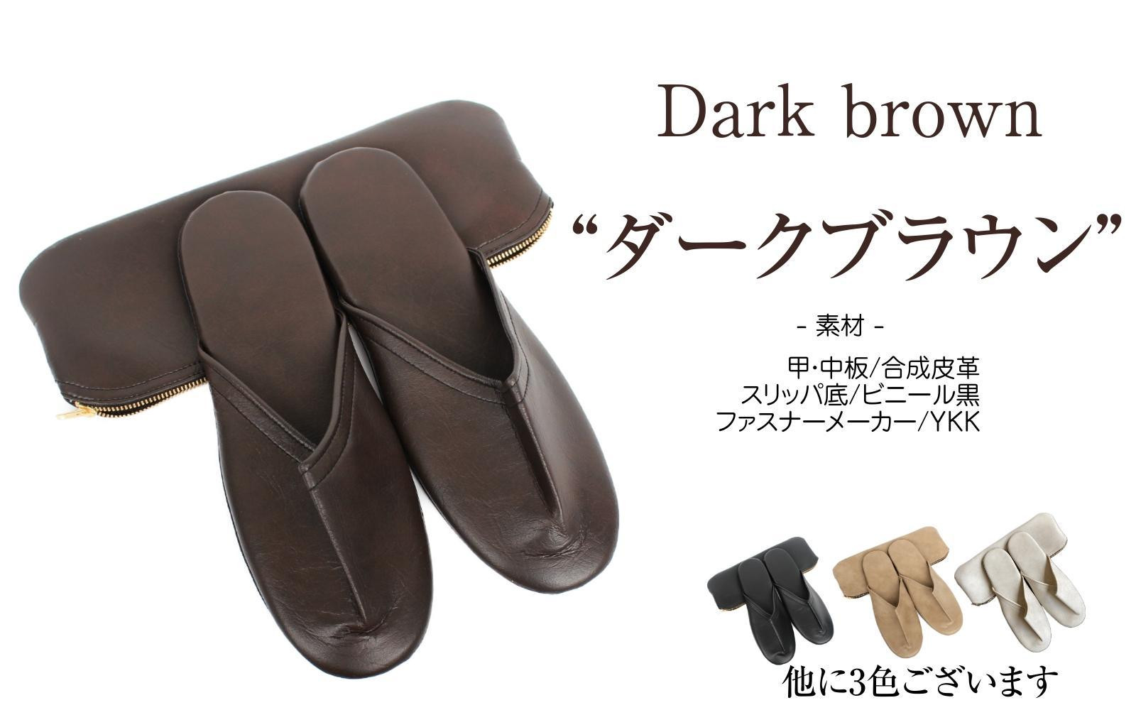 マット合皮 携帯用スリッパ ケース付き Lサイズ ダークブラウン