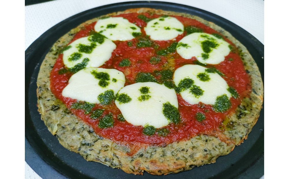 オリジナルグルテンフリー生地、緑黄色野菜海藻ソース、オリジナルビーガンクリームで焼き上げた逸品です。
