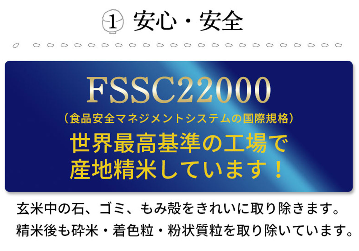 HACCPを含むFSSC22000世界最高基準の工場で産地精米しています!