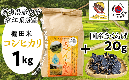 国産きくらげ20g+棚田米きんのあき1kg