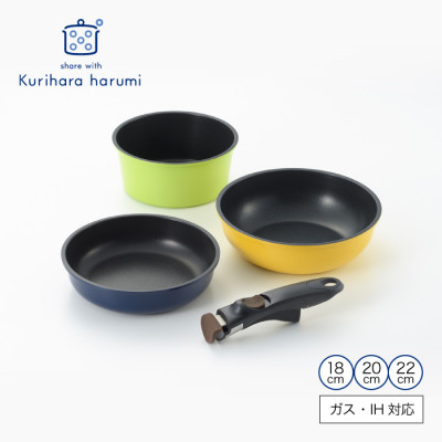 収納性に優れたハンドルが着脱できるフライパン3点セット 栗原はるみ 着脱ハンドルフライパンセット(18・20・22cm) 3サイズセット 新潟県 弥彦村【1122168】