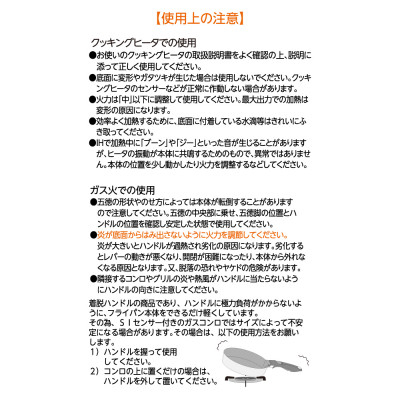 鉄製なので使うほどに油が馴染みます。 熱廻りが良いので、食材を入れても温度変化が少なく揚げ物がカラッと仕上がります。 便利な注ぎ口付き。 サイズ:全長21.0cm×全幅15.9cm×全高9.2cm(鍋高7.7cm) 満水容量:1300ml 適正容量:550ml 重量:約576g ■注意事項/その他 食洗機:× 電子レンジ:× オーブン:×