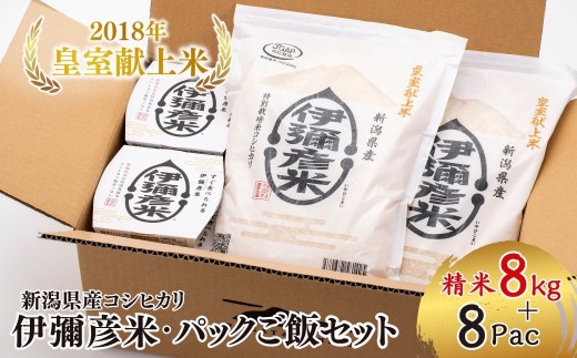 <伊彌彦米とパックごはんセット>精米2kg×4袋 パックごはん8パ…