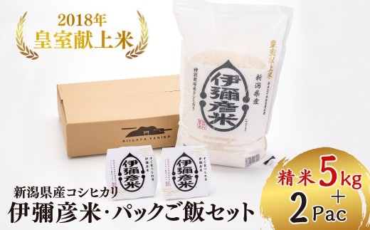 <伊彌彦米とパックごはんセット>精米5kg×1袋 パックごはん2パ…