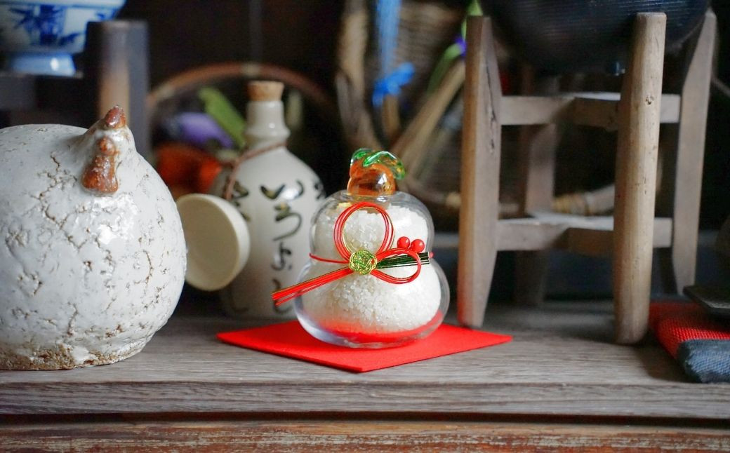 お餅の原料であるお米を中に入れ飾り、お供えをして、最後に頂くことができます。