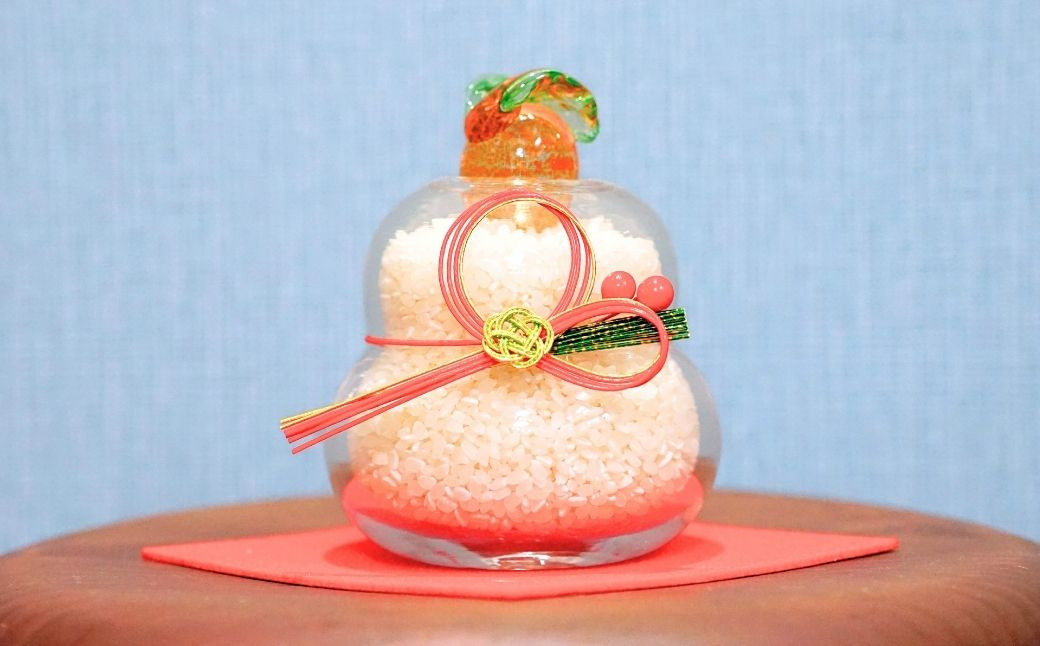 お米の入るかがみもち ガラス細工 正月飾り 新潟県 弥彦村_手作…