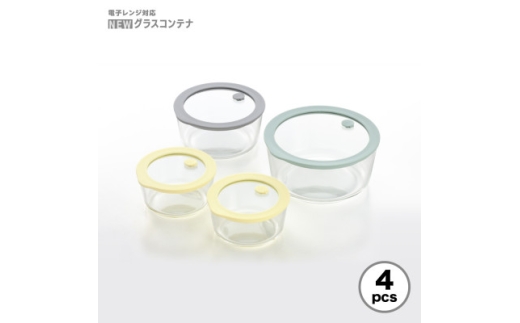電子レンジ対応グラスコンテナ(保存容器)4pcs | 新潟県 弥彦村