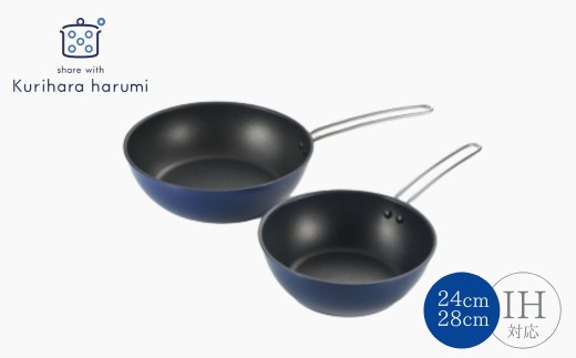 栗原はるみ 深型フライパン 24cm&28cm 2個セットIH対応 ネイビ…